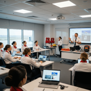 Huấn luyện cabin (training) sau khi trúng tuyển — bạn sẽ được học về an toàn bay, phục vụ khách hàng, nghiệp vụ cabin trước khi làm việc chính thức.