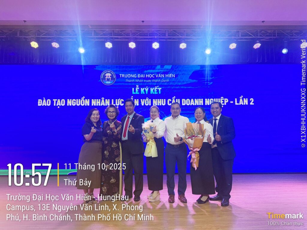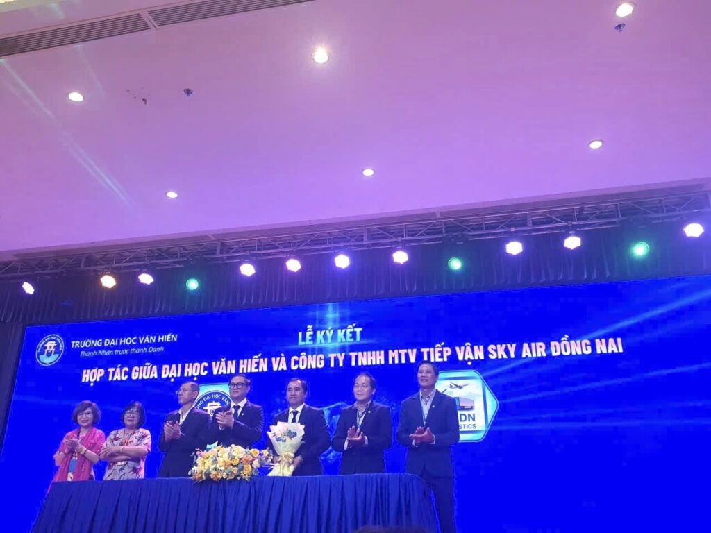 Ngày 11/10/2025, tại hội trường Trần Hưng Đạo – Trường Đại học Văn Hiến (TP.HCM), đã diễn ra lễ ký kết hợp tác MOU giữa Công ty TNHH MTV Tiếp Vận Sky Air Đồng Nai và Đại học Văn Hiến. Sự kiện này đánh dấu bước ngoặt quan trọng trong chiến lược “gắn kết đào tạo – tuyển dụng – phát triển nguồn nhân lực chất lượng cao” giữa nhà trường và doanh nghiệp trong lĩnh vực hàng không và logistics.