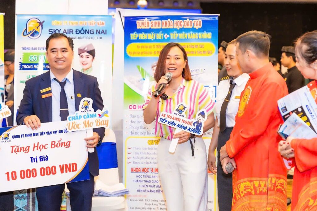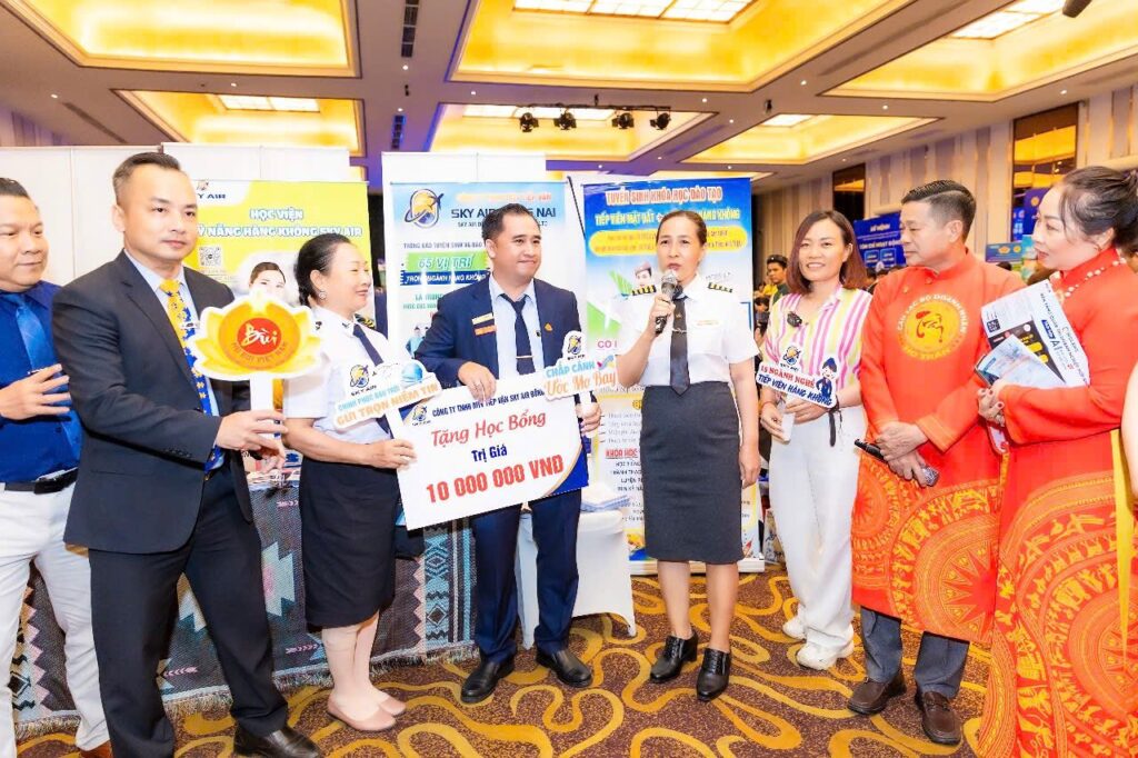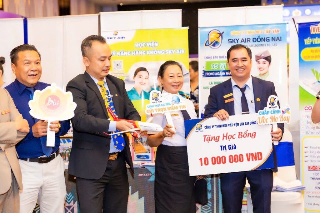 Một trong những điểm nhấn đầy cảm xúc tại sự kiện là khi Sky Air Đồng Nai trao tặng suất học bổng trị giá 10.000.000 VNĐ dành cho học sinh – sinh viên có hoàn cảnh khó khăn, nhưng vẫn giữ vững tinh thần vượt khó và khát khao chinh phục bầu trời.